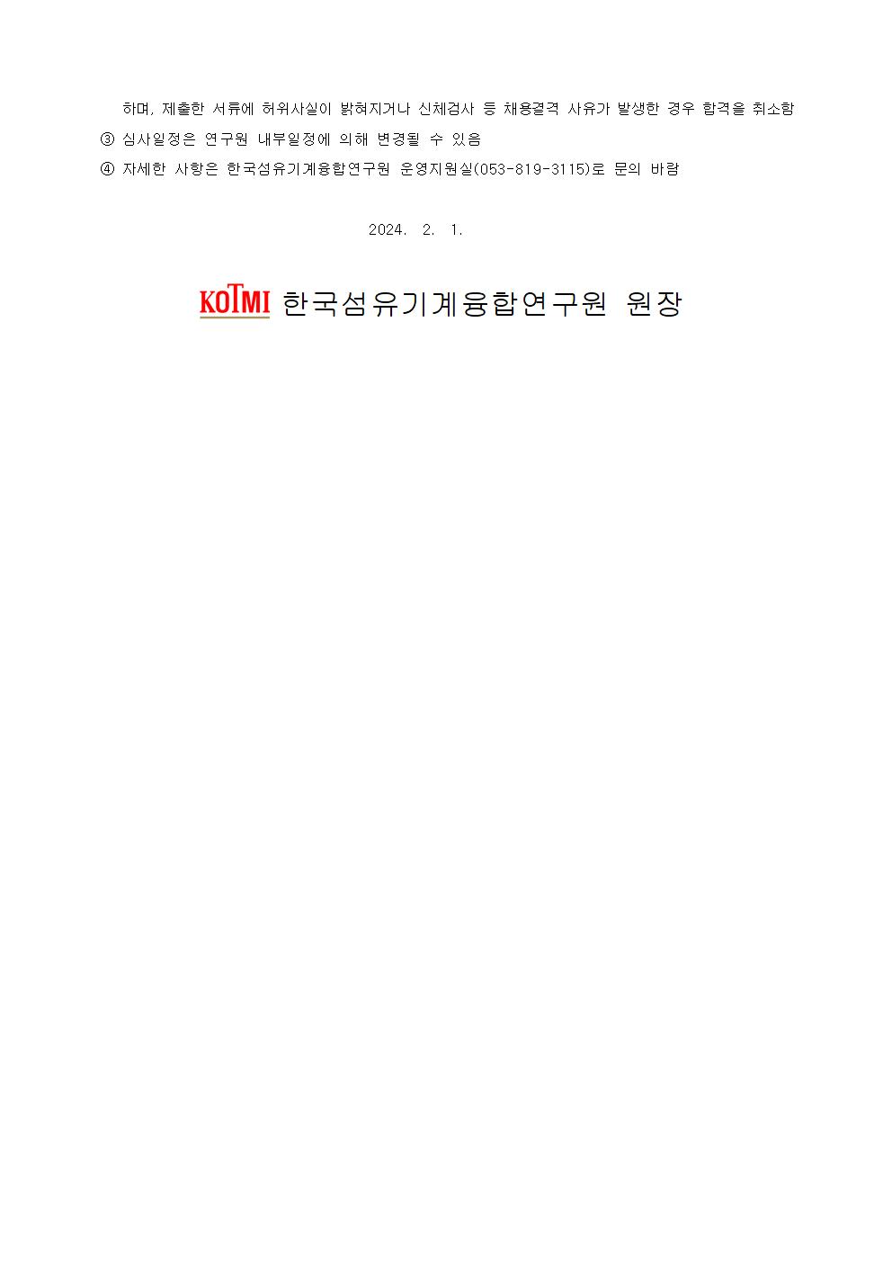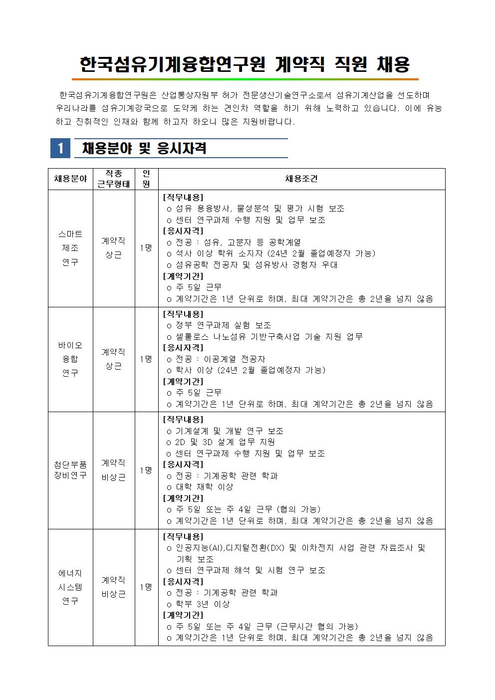 한국섬유기계융합연구원 직원 채용