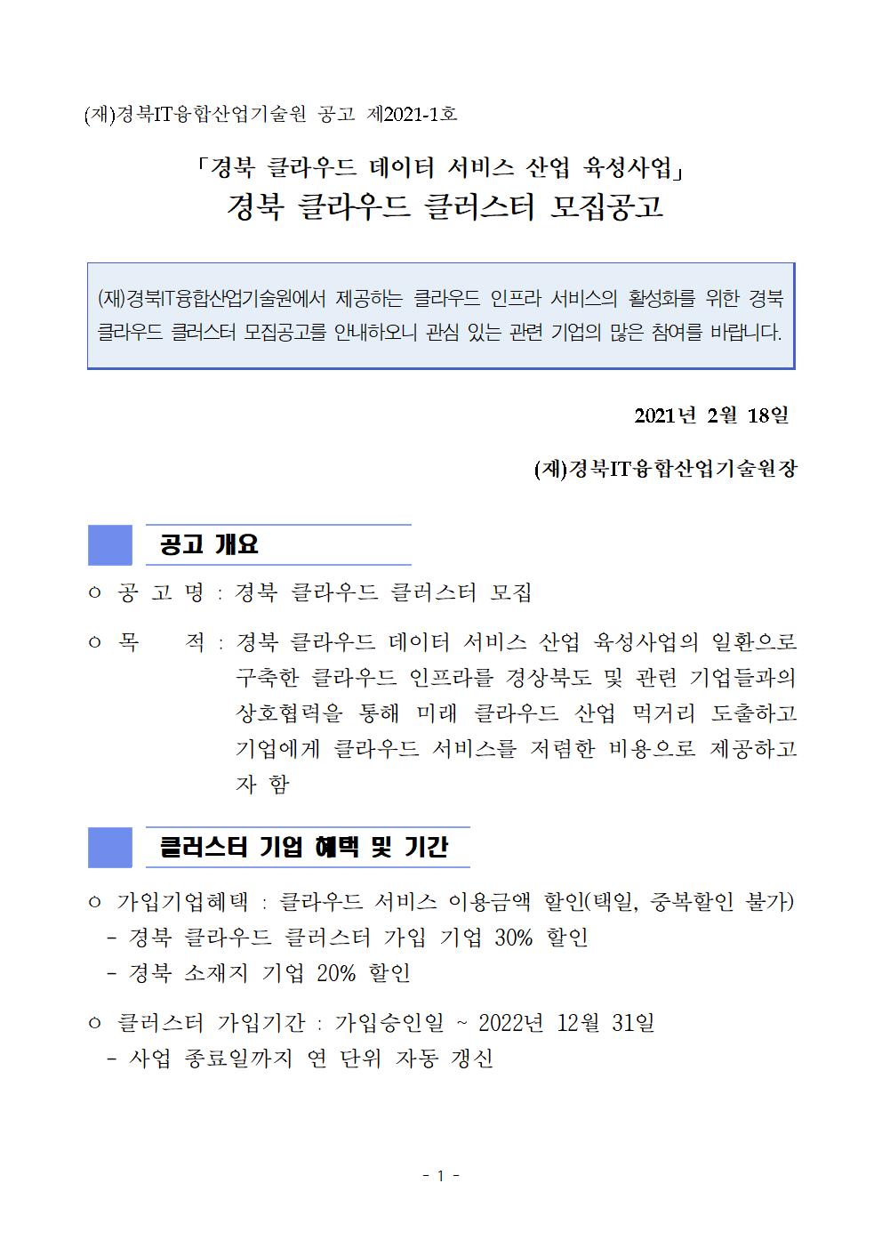 [공고]경북 클라우드 클러스터 모집공고