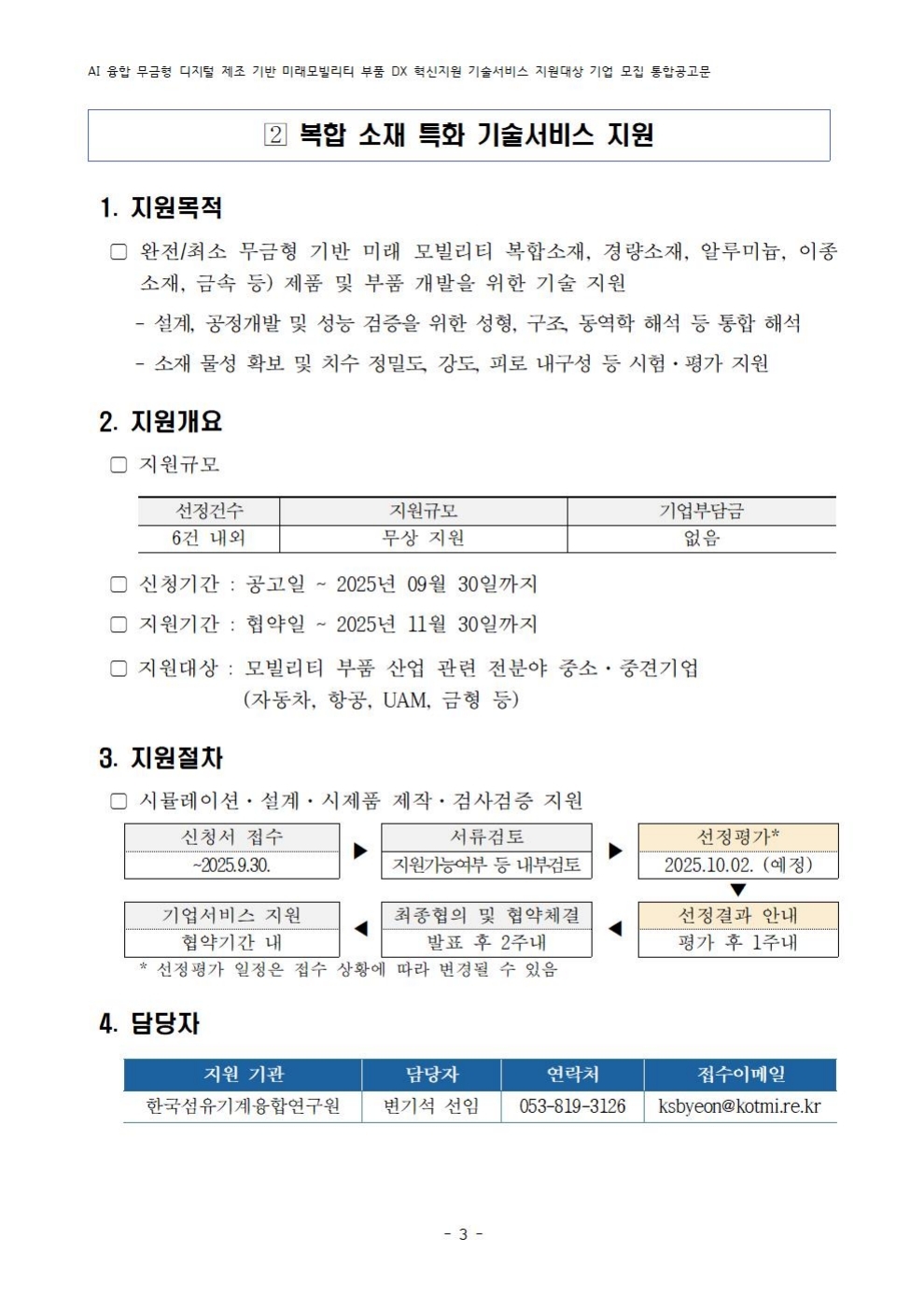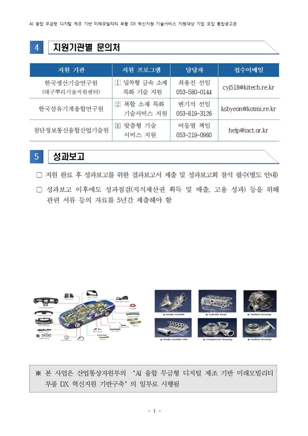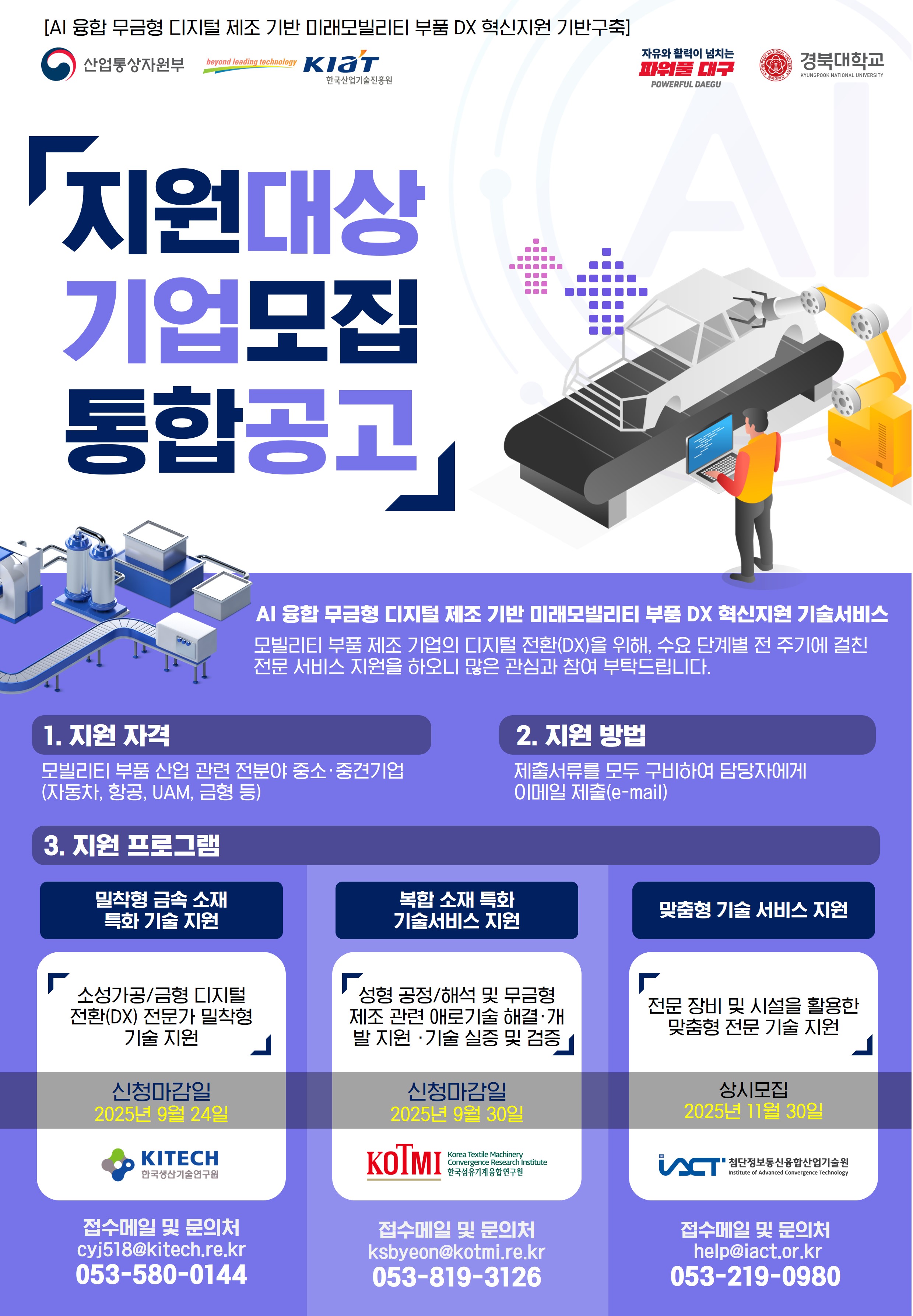 [공고] AI 융합 무금형 디지털 제조 기반 미래모빌리티 부품 DX 혁신지원 기술서비스 지원대상 기업 모집