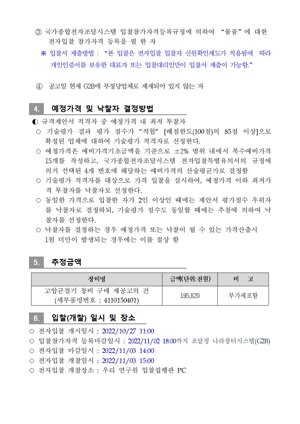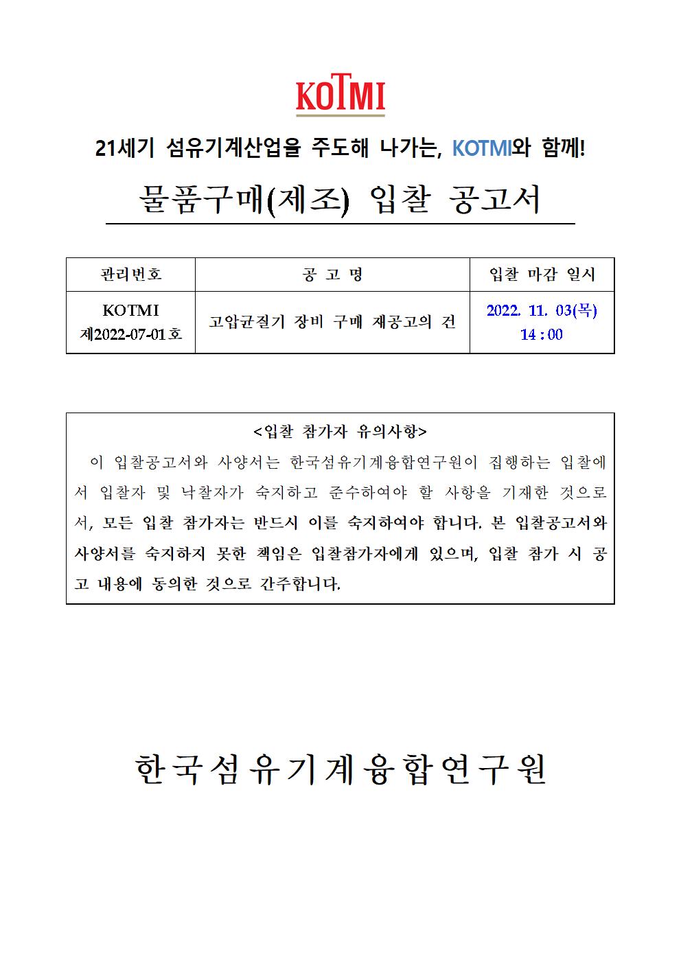 [재공고] 습식 콜로이드밀 장비 구매 재공고의 건