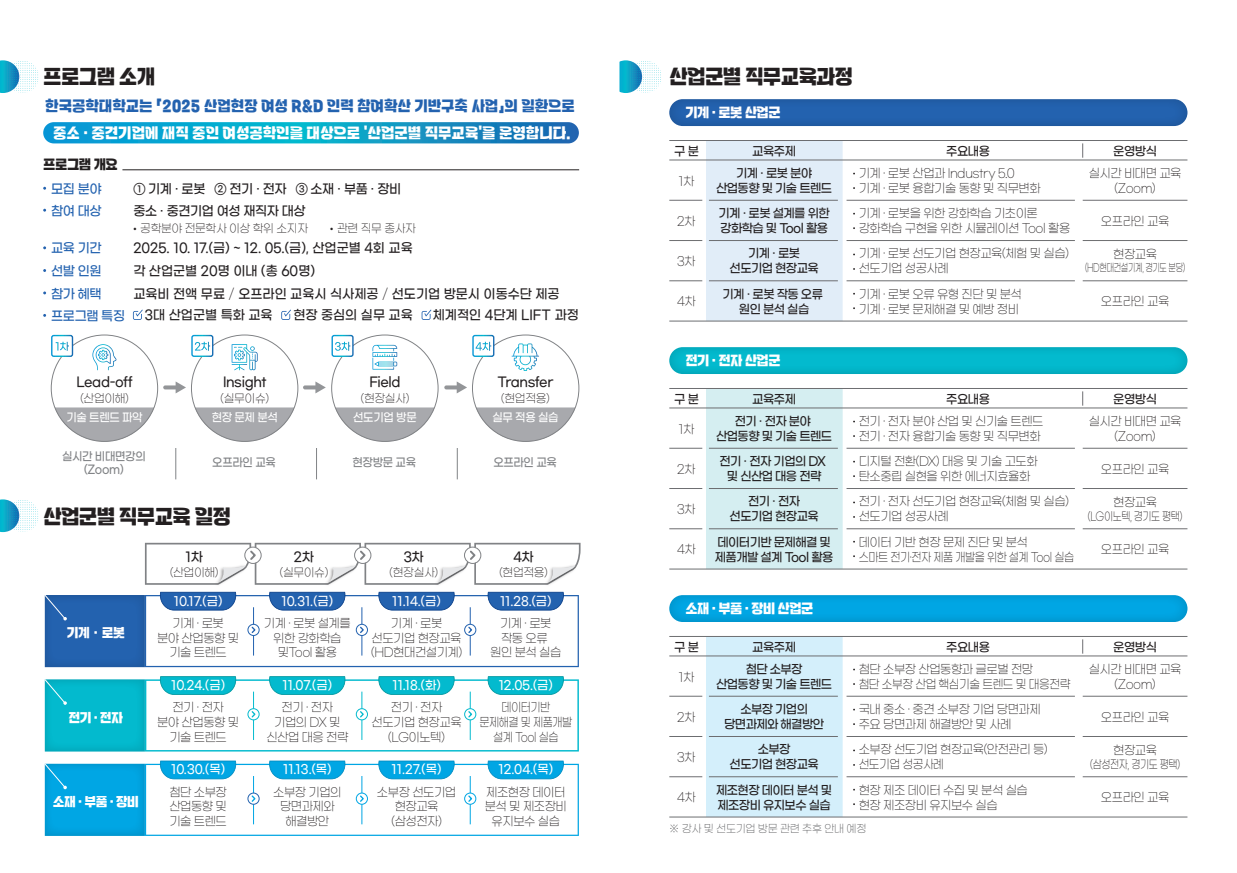 - 교육명: 여성공학인 산업군별 직무교육 'CAREER-UP, 혁신과 현장을 잇다.'