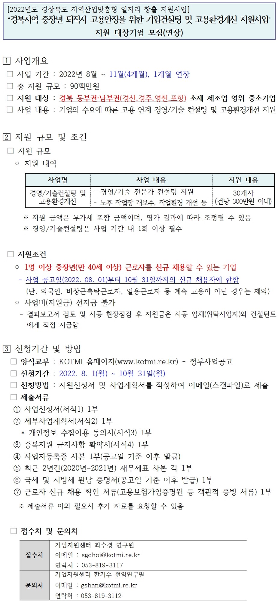 [공고] 경북지역 중장년 퇴직자 고용안정을 위한 기업컨설팅/고용환경개선 지원사업(연장)