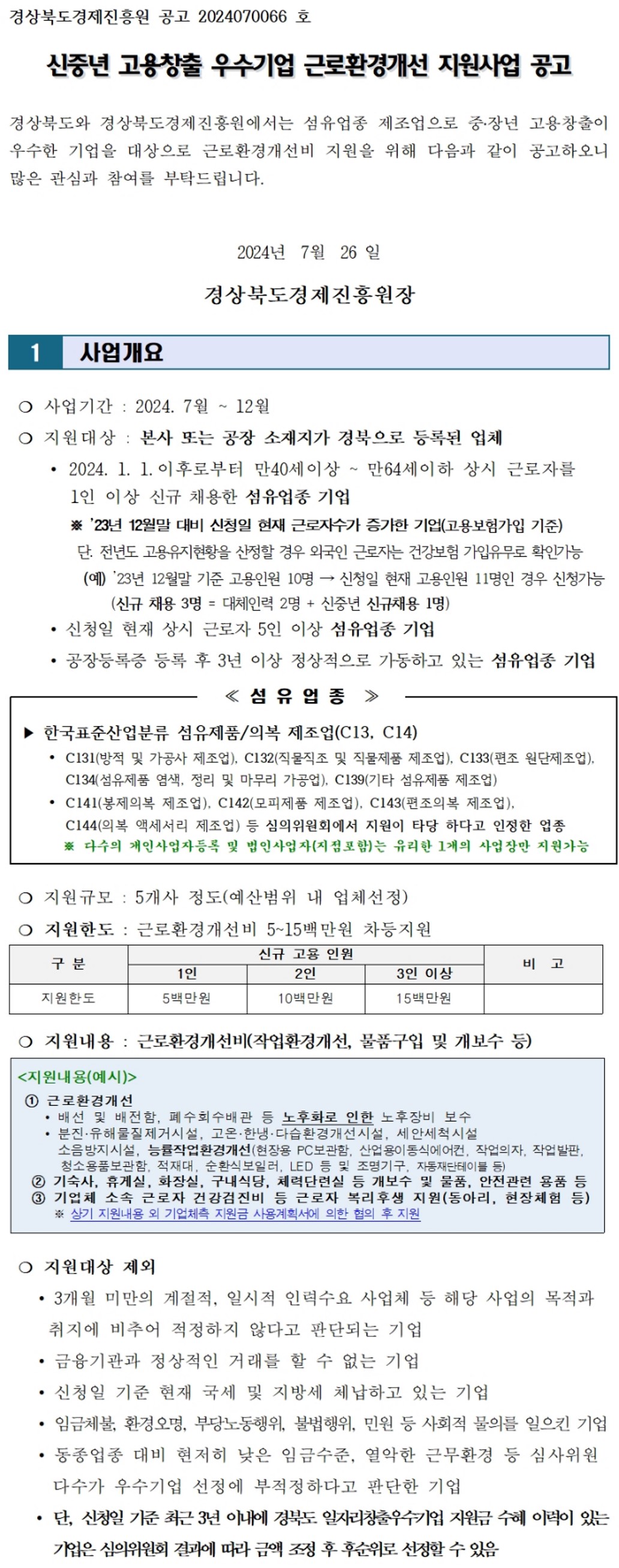[경상북도경제진흥원] 2024년 신중년 고용창출 우수기업 근로환경개선 지원사업 공고